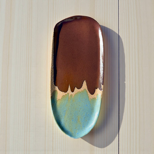 This way for one-of-a-kind serving platters, large trays and other table toppers. All are handcrafted with organic curves and contemporary, cross-cultural designs.