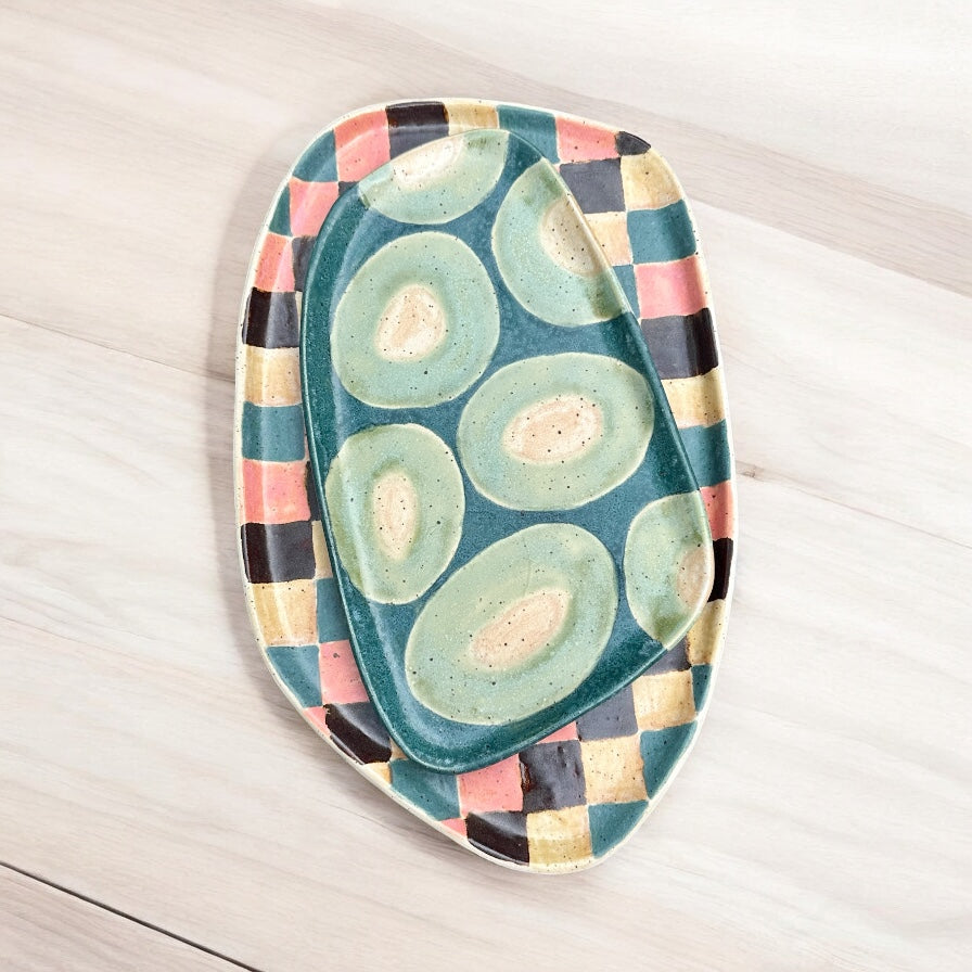 Basque Green + Teal Agate tray set